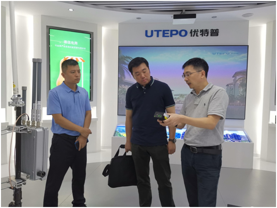 汕頭高新區(qū)管委會經(jīng)發(fā)局局長林淳、汕頭高新區(qū)科創(chuàng)投資開發(fā)有限公司總經(jīng)理張玉輝參觀優(yōu)特普展廳并了解產(chǎn)品